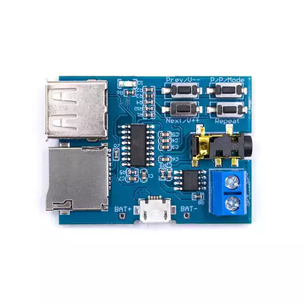 یکی از ویژگی‌های بارز این ماژول، پشتیبانی از کارت حافظه (TF card) است. این قابلیت به کاربران این امکان را می‌دهد که فایل‌های صوتی خود را بر روی کارت حافظه ذخیره کرده و به راحتی آن‌ها را پخش کنند. این ویژگی به ویژه برای کاربرانی که می‌خواهند مجموعه‌ای از آهنگ‌ها را به صورت مداوم پخش کنند، بسیار مفید است.